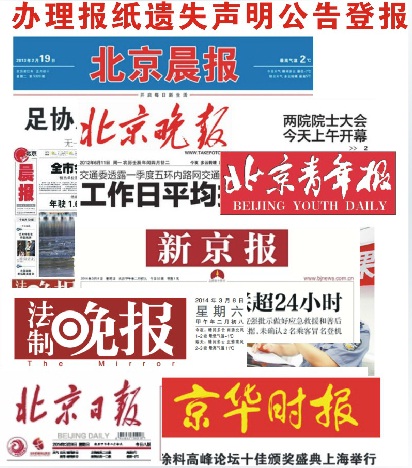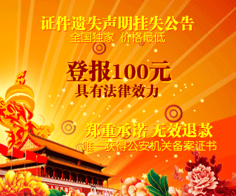■个人证件遗失登报:身份证遗失登报、房地产经纪人证遗失声明登报、房屋产权证丢失登报、声明护照挂失登报、律师执业证丢失声明登报、外国人就业证挂失声明登报、建筑工程施工许可证遗失声明以及其它【职业书遗失登报声明】等